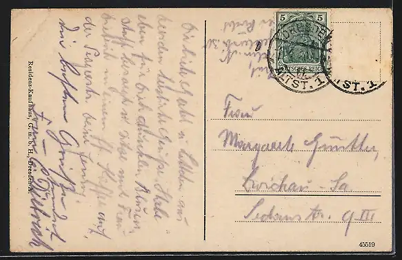 alte Ansichtskarte, gelaufen, Briefmarke entfernt, Eckknick oben re., Stempelspur, guter Zustand