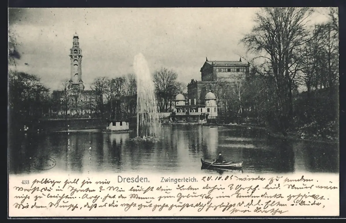 AK Dresden, Zwingerteich mit Ruderboot