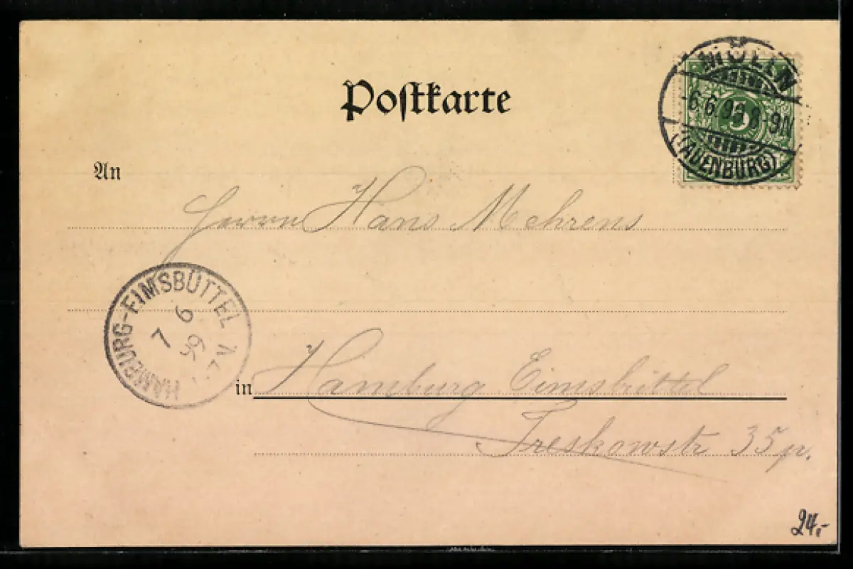 alte Ansichtskarte, gelaufen 1899, guter Zustand