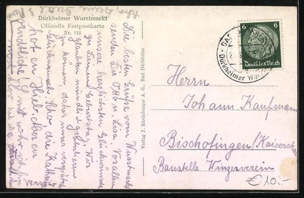alte Ansichtskarte, gelaufen 1936, guter Zustand