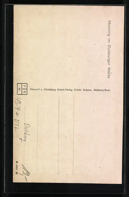 AK Duisburg, Restaurant Monning im Duisburger Wald, Werbung für 5 Uhr Tanz-Tee