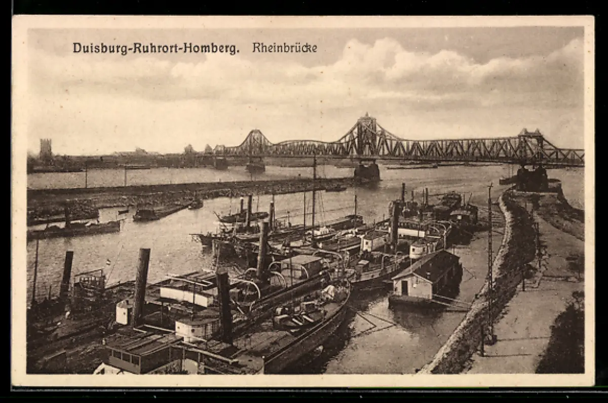 AK Duisburg-Ruhrort, Homberg, Rheinbrücke vom Hafen aus