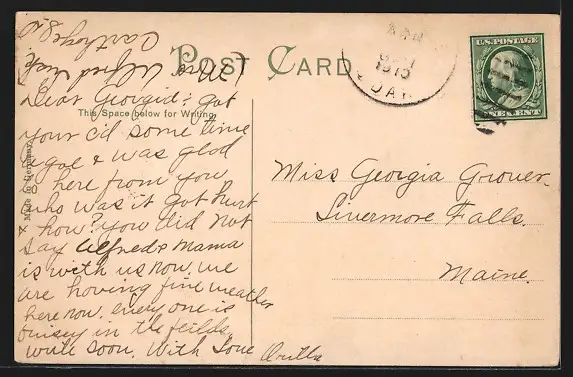 alte Ansichtskarte, gelaufen, Bugspur oben links, guter Zustand