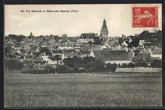 AK Dun-sur-Auron, Vue Générale du village et ses toits pittoresques