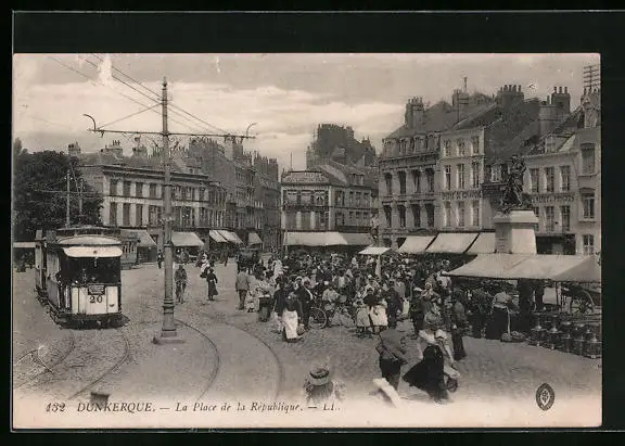 AK Dunkerque, Place de la République, Strassenbahn