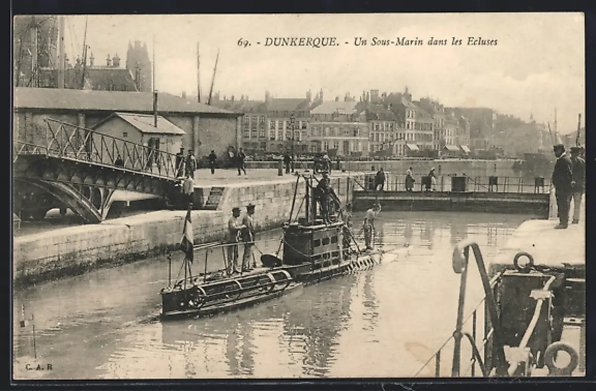 AK Dunkerque, un Sous-Marin dans les Ecluses, U-Boot in der Schleuse