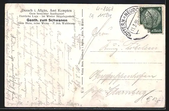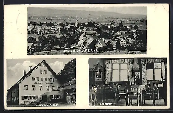 AK Durach i. Allgäu, Gasth. z. Schwanen, Nebenzimmer, Ortsansicht