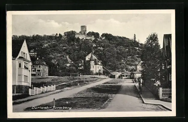 AK Durlach, Strassenpartie mit Turmberg