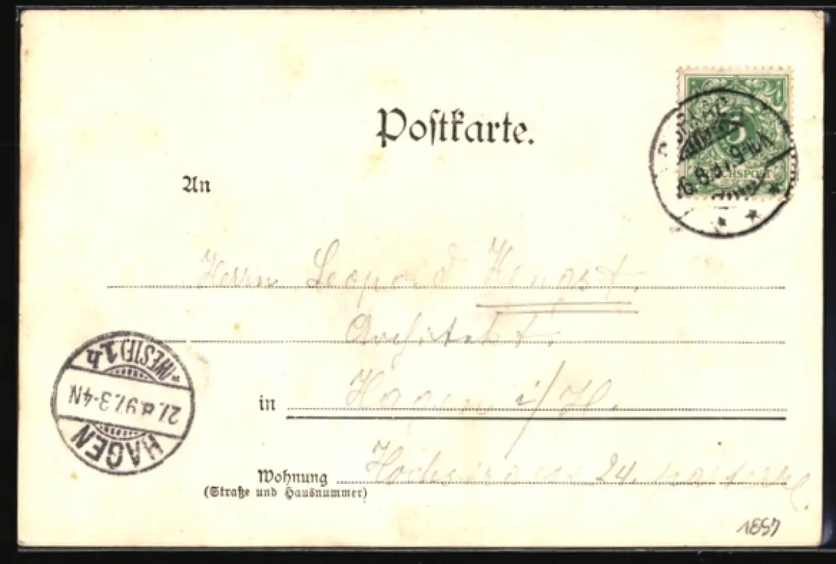 gelaufen 1897, Eckknick unten re., Stempelspur, guter Zustand