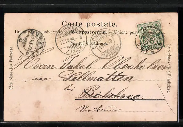 alte Ansichtskarte, gelaufen 1899, guter Zustand