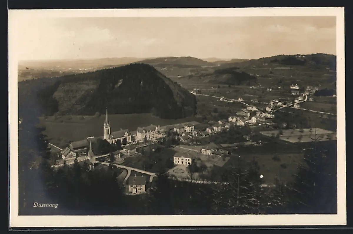 AK Dussnang, Totalansicht mit Bergen aus der Vogelschau