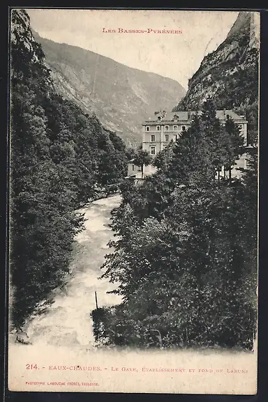 AK Eaux-Chaudes /Basses-Pyrénées, Le Gave, Établissement et Fond de Laruns
