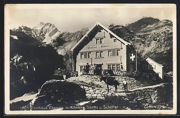 AK Ebenalp, Gasthaus Ebenalp mit Altmann, Säntis und Schäfler