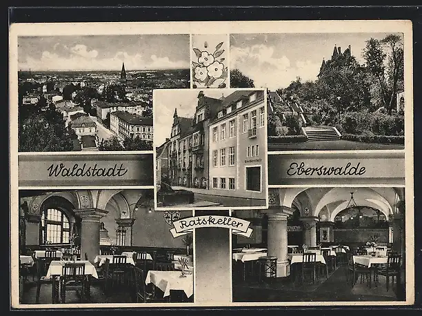 AK Eberswalde, Parkpartie, Gasthaus Ratskeller und Teilansicht