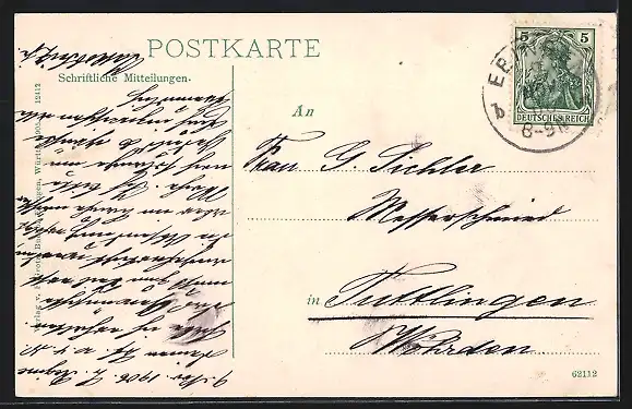 alte Ansichtskarte, gelaufen 1906, Eckknick re. unten, guter Zustand
