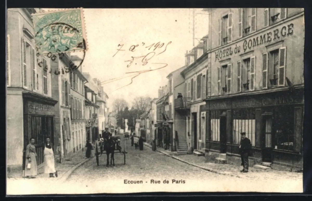 AK Ecouen, Rue de Paris, Hôtel du Commerce