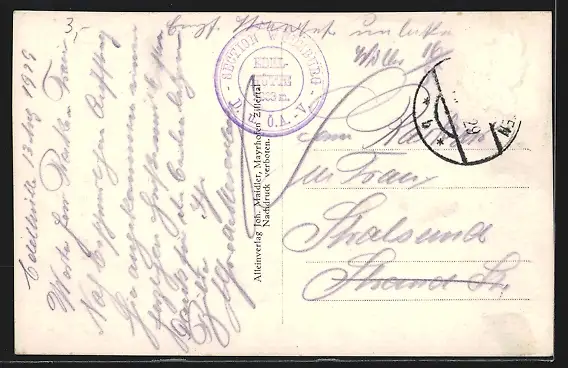 alte Ansichtskarte, gelaufen 1929, Briefmarke entfernt, rückseitig Oberflächenschaden, guter Zustand