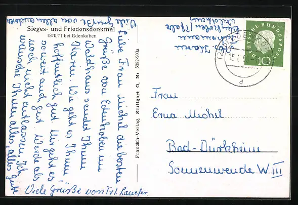 gelaufen 1959, Eckknicke links u. rechts, guter Zustand
