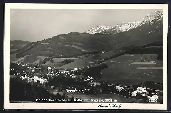 AK Edlach bei Reichenau, Gesamtansicht mit Raxalpe