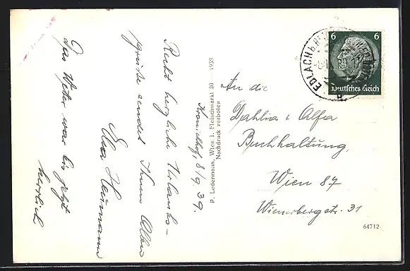 alte Ansichtskarte, gelaufen 1939, guter Zustand