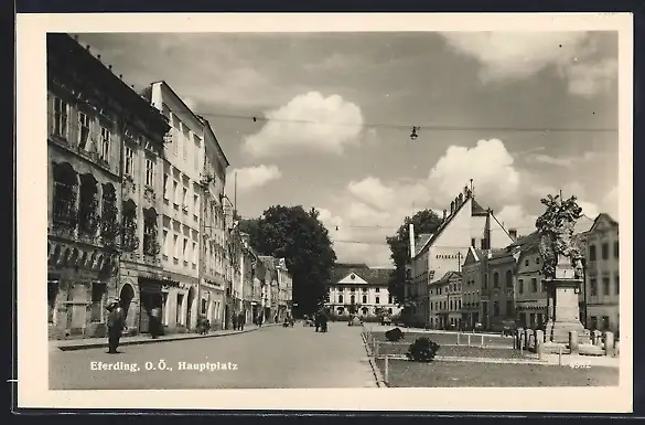 AK Eferding /O. Ö., Hauptplatz mit Denkmal
