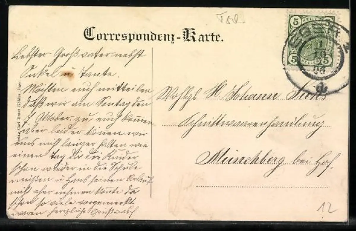 alte Ansichtskarte, gelaufen 1906, Eckknick unten re., Stempelspur, guter Zustand