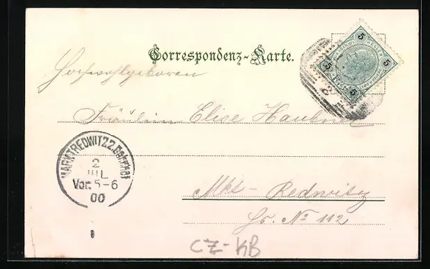 alte Ansichtskarte, gelaufen 1900, Eckknick rechts unten, guter Zustand