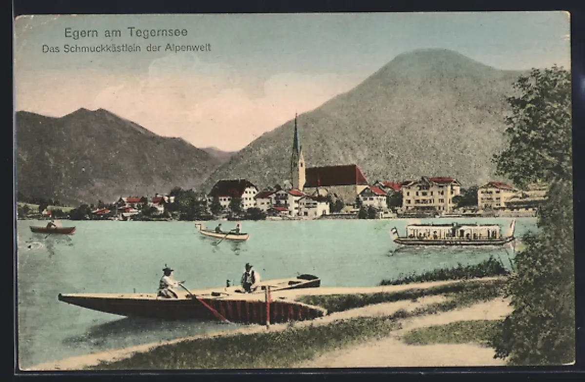 AK Egern am Tegernsee, Seeufer, Kirche, Boote