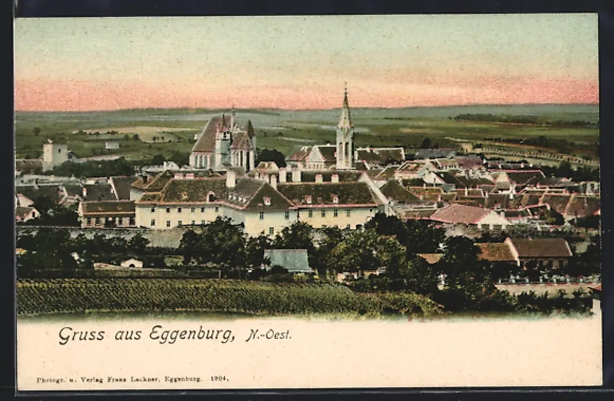 AK Eggenburg /N.-Ö., Ortsansicht mit Kirchen aus der Vogelschau