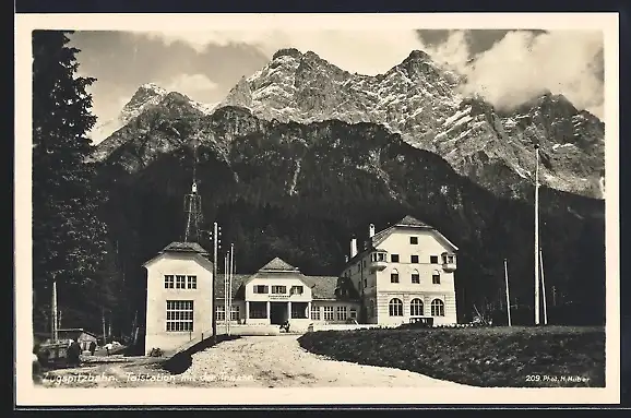 AK Ehrwald, Zugspitzbahn, Talstation mit der Trasse