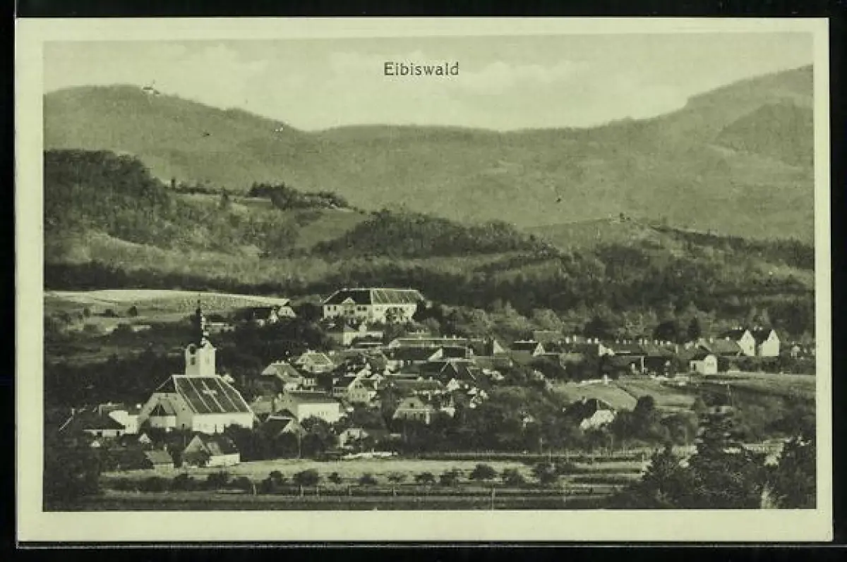 AK Eibiswald, Ortsansicht mit Kirche aus der Vogelschau