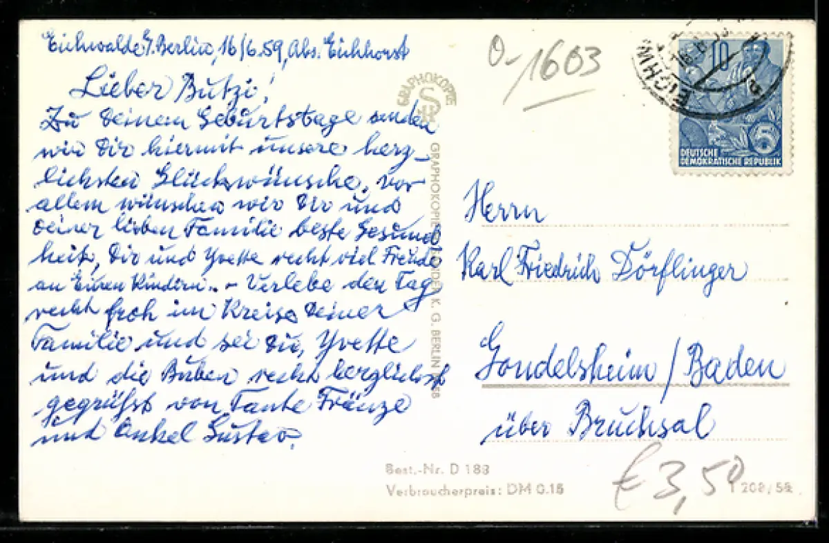 alte Ansichtskarte, gelaufen 1959, guter Zustand