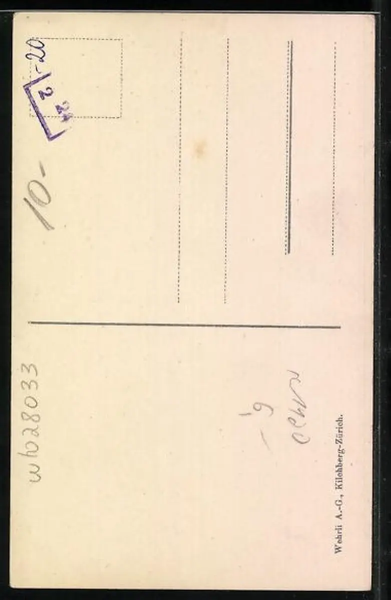Personenbezogene Daten auf der Rückseite der Karte wurden durch blauen Textmarker unkenntlich gemacht. Die blauen Stellen sind auf die Vorderseite durchgeweicht und wirken sich negativ auf das Postkartenfoto aus