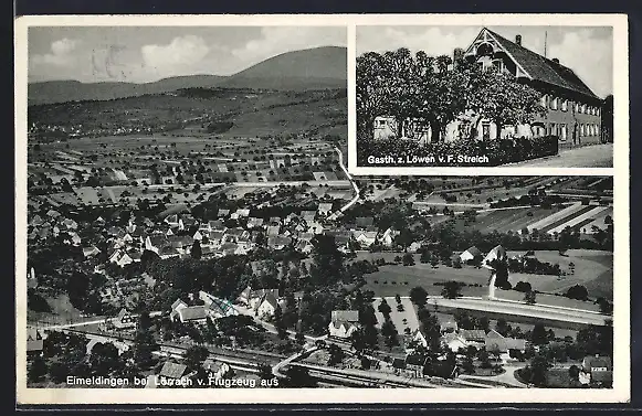 AK Eimeldingen, Gasth. z. Löwen v. F. Streich, Ortspanorama