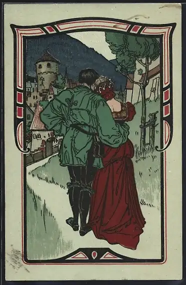 AK Ein Paar auf dem Weg in den Ort, Jugendstil
