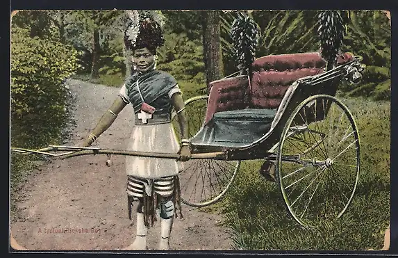 AK Ein Rikschafahrer mit seiner Rikscha im Park