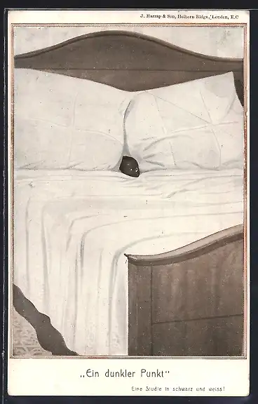 AK Ein dunkler Punkt, afrikanischer Bube liegt in einem grossen weissen Bett