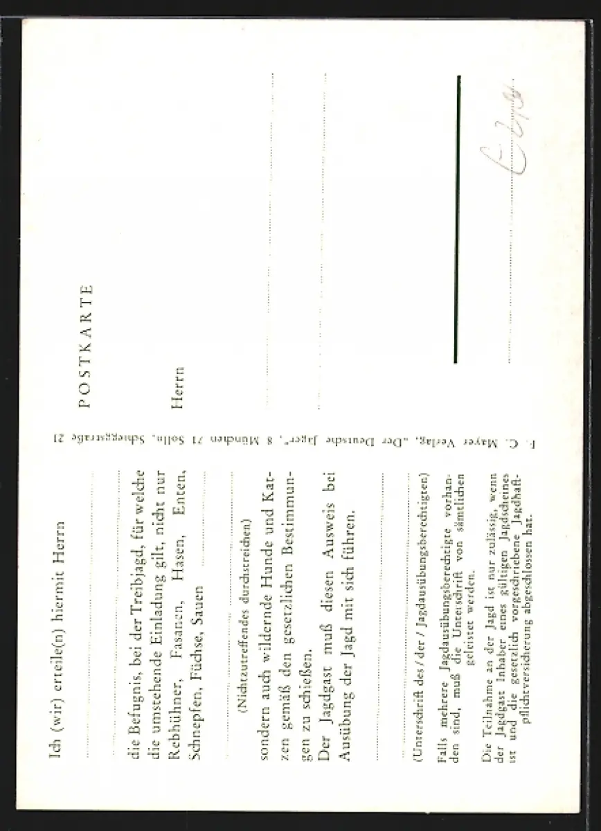 AK Einladung zur Treibjagd, Jäger trieben das Wild ins Freie