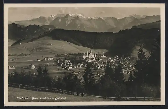 AK Einsiedeln, Generalansicht mit Glärnisch