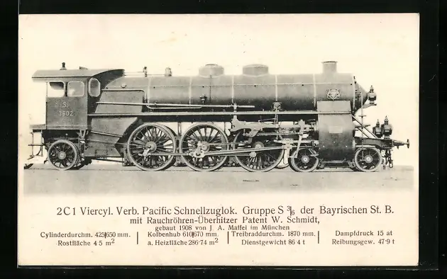 AK Eisenbahn, 2 C 1 Viercyl. Verb. Pacific Schnellzuglok., 3602