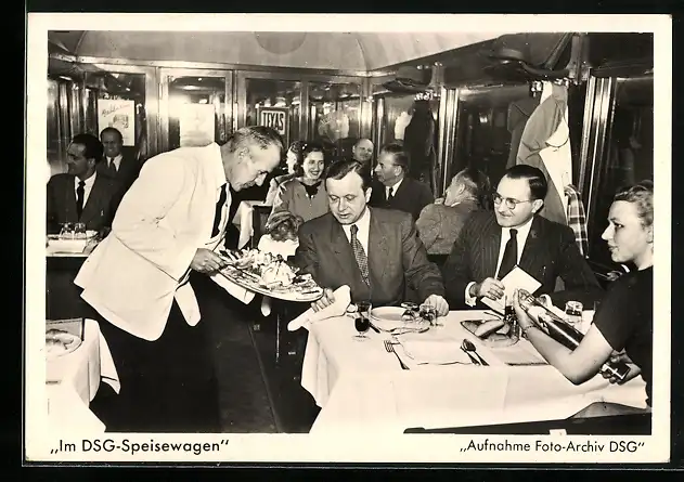 AK Eisenbahn Speisewagen der DSG, Innenansicht
