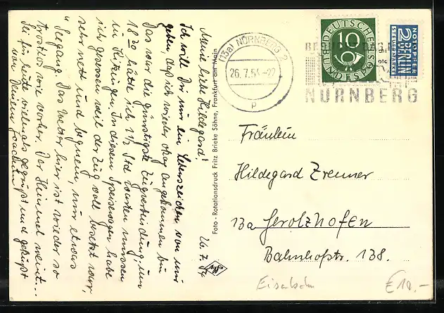 alte Ansichtskarte, gelaufen 1954, guter Zustand