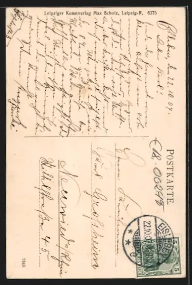 alte Ansichtskarte, gelaufen 1907, Bugspur unten mittig, guter Zustand