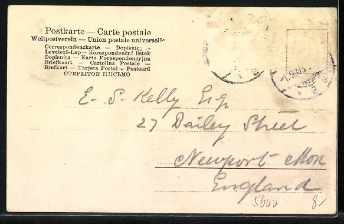 alte Ansichtskarte, gelaufen, Briefmarke entfernt, Stempelspur, guter Zustand