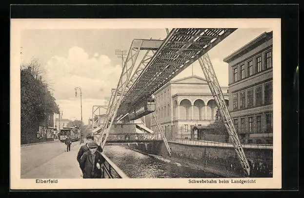 AK Elberfeld, Schwebebahn beim Landgericht mit Strassenbahn