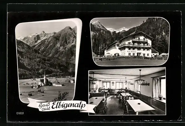 AK Elbigenalp, Kirche, Tiroler Weinstube mit Aussen- und Innenansicht
