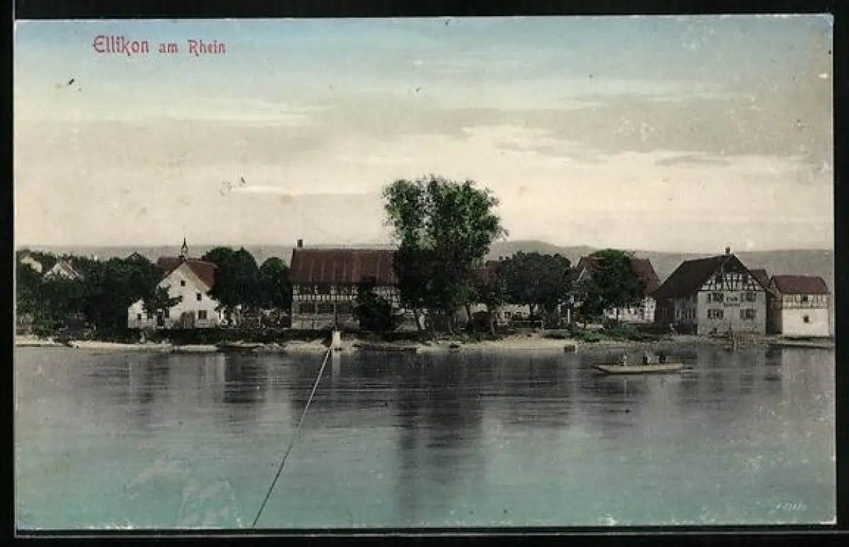 AK Ellikon am Rhein, Ortspartie am Fluss
