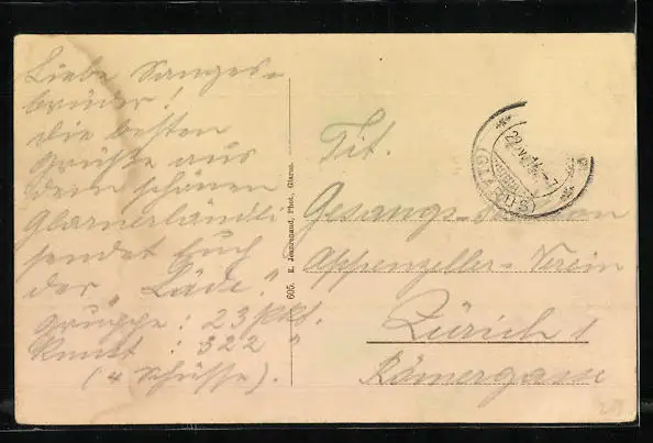 gelaufen 1914, Briefmarke entfernt, guter Zustand