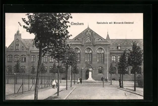 AK Elmshorn, Realschule mit Bismarck-Denkmal