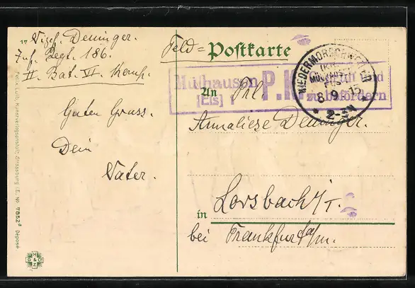 gelaufen 1915, Eckknick re. unten, guter Zustand
